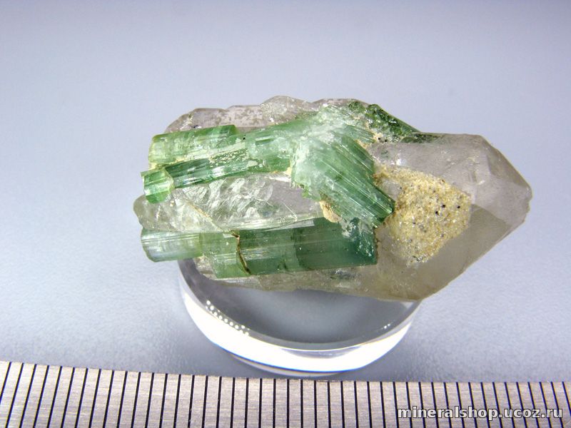 Зелёно-голубой турмалин в кристалле кварца (LAGHMAAN mine of Afghanistan)